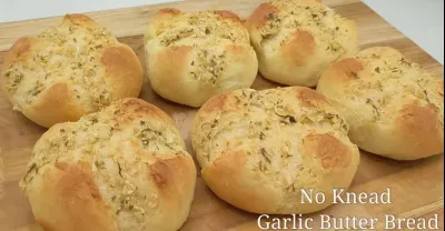 No Knead Garlic Butter Bread 全程免揉免機器 普通麵粉 蒜蓉牛油麵包 新手也能成功
