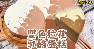 經典的黑白交錯紋路,奶香滑順,奶香之間帶點可可風味【雙色拉花乳酪蛋糕】