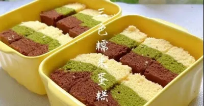 網紅糯米三色蛋糕做法來咯,香甜軟糯,一口下去就能吃到3個口味