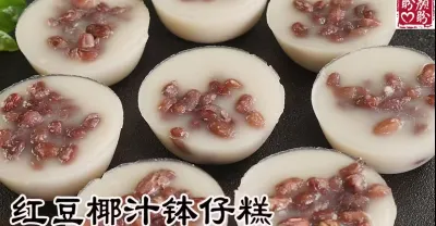 紅豆椰汁缽仔糕,QQ彈彈,清甜爽口,超級好吃!Red Bean Coconut Juice Bowl Cake。