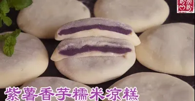 免烤箱,軟糯香甜,超級好吃的紫薯香芋糯米涼糕。Purple Potato and Taro Glutinous Rice Cold Cake。