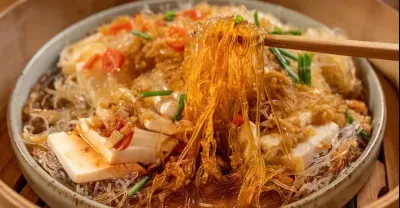 VEGAN Rezept | 10 minutes Steamed Silken Tofu with Glass Noodles & Garlic Soy Sauce
