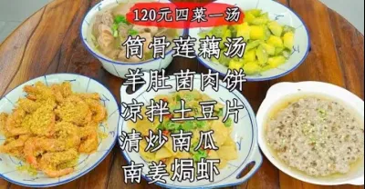 120元工作餐,四菜一湯,南姜蝦,蒸肉餅,蓮藕湯。