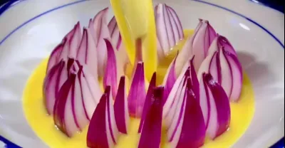 將雞蛋倒進洋蔥裡面,出鍋就是大人小孩都愛吃的美食,鮮香又嫩滑