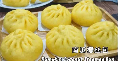 南瓜椰絲包 Pumpkin Coconut Steamed Bun | 無發粉無白油的健康包子食譜 | 簡易食譜 | 健康食譜