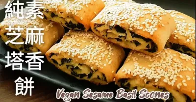純素芝麻塔香餅 1碗麵粉1把九層塔 做鹹香軟綿又酥脆的小點心 Vegan Vegan Sesame Basil Scones