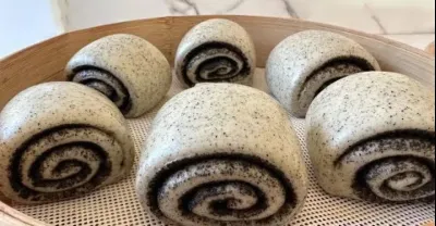 黑芝麻饅頭, 水光肌香軟迷你黑芝麻餡饅頭食譜: Black sesame seeds steamed bun recipe.