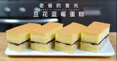 豆花藍莓蛋糕|自製純天然藍莓醬,搭配豆香味蛋糕,太好吃了吧