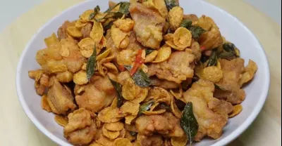 【鹹蛋Cornflakes炸雞】咸香酥脆,裹上鹹蛋配上Cornflakes,口感非常豐富,吃了一口接一口完全停不下來!