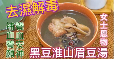 去濕解毒湯水 ! 黑豆淮山眉豆湯 Detoxifying black bean, dried common yam, and black-eye pea soup|解毒|補腎|補腎|女士湯水
