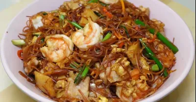 【炒麵線】香氣十足,口感豐富,非常的好吃,一口接一口的吃完去停不下來,一個人能吃上一大盤