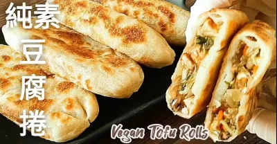 純素豆腐捲 1塊豆腐1碗麵粉 做排隊小吃 皮薄餡多 比包子還香 Vegan Tofu Rolls