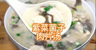 家常菜紫菜菌子肉片湯,清淡鮮香 菌子鮮 口感脆 肉片鮮香滑嫩【柯柯美食記】
