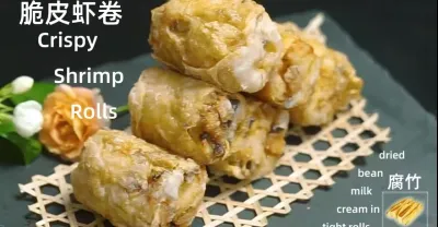 腐竹提煉和脆皮蝦卷的製作 Refining of Rolls of dried bean milk creams and Making of Crispy Shrimp Rolls