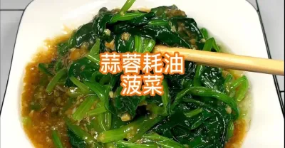 家常菜蒜蓉耗油菠菜,口味清淡 ,口感脆嫩,菠菜回口甜!【柯柯美食記】