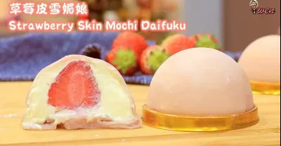 草莓皮雪媚娘食譜Strawberry Skin Mochi Daifuku Recipe|天然無色素,粉色QQ拉絲,隔夜不幹Natural Pink, Stringpull, won』t dry)