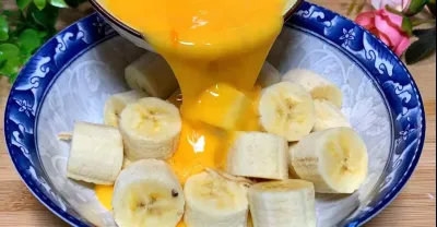 香蕉中淋3顆雞蛋,沒料到這麽好吃,不油炸不烙餅,天天吃都不膩