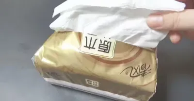原來抽紙上有個機關,只需動一下這裡,抽紙自動打開,太厲害了