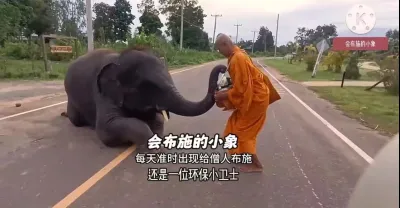 會布施的小象:每天準時出現給僧人布施,還是一位環保小衛士!