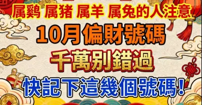 屬雞 屬豬 屬羊 屬兔的人注意 10月偏財號碼千萬別錯過 ,快記下這幾個號碼!財運一飛沖天!