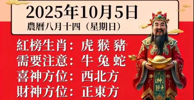 明日·小運播報~2025 年 10 月 5 日(星期日)農曆八月十四
