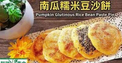 南瓜糯米豆沙餅,太美味了,一次可以吃幾個。Pumpkin Glutinous Rice Bean Paste Pie。
