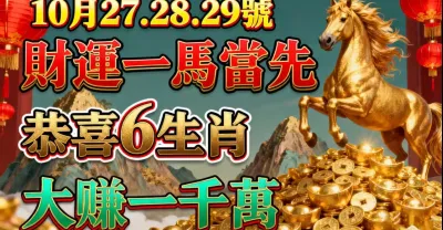 10月27.28.29號 財運一馬當先 恭喜6生肖 大賺一千萬!
