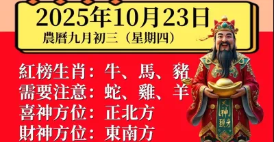 明日小運播報~2025 年 10 月 23 日(星期四)農曆九月初三
