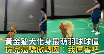 黃金獵犬化身最萌羽球球僮 撿完還驕傲轉圈:我厲害吧