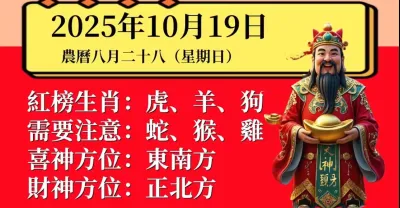 明日小運播報~2025 年 10 月 19 日(星期日)農曆八月二十八