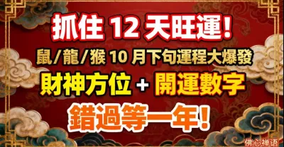 抓住12天旺運!鼠 / 龍 / 猴 10 月下旬運程大爆發:財神方位 + 開運數字,錯過等一年!#運勢 #正能量 #易經 #十二生肖 #感情 #補財庫旺財氣 #玄學 #風水 #國學文化 #中華文化