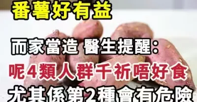 番薯好有益,醫生提醒:但4類人群最好忌口,尤其系第2種會有生命危險,已經有人中招?!