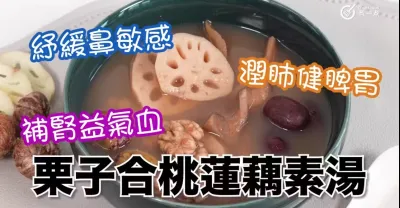 夏日湯水|紓緩鼻敏感|潤肺健脾胃|補腎益氣血|栗子合桃蓮藕素湯健脾|補腎|強筋|活血|補中|益氣|固精|潤肺|定喘|潤腸|通便|強化脾胃|開胃|養陰|清熱|行血|化瘀|養血|安神|補肺|固腎|止瀉