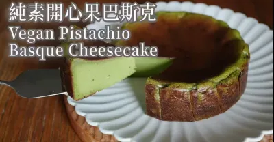 治癒周末小甜點 | 純素開心果巴斯克蛋糕,絲滑濃郁無負擔!Weekend Bliss | Vegan Pistachio Basque Cheesecake - Silky & Guilt-Free!