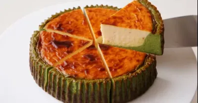 💚一口驚艷!抹茶柚子巴斯克芝士蛋糕,甜而不膩的高級味道