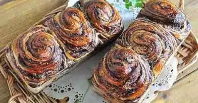 巧克力千層迷你吐司。Mini chocolate layer bread