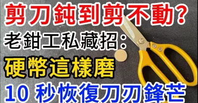 剪刀鈍到剪不動?老鉗工私藏招:硬幣這樣磨,10 秒恢復刀刃鋒芒!