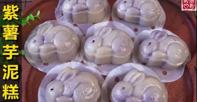 軟糯香甜的小白兔紫薯芋泥糕,非常的簡單又美味!Little White Rabbit Purple Potato Taro cake。