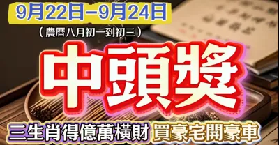 9月22日 9月24日(農暦八月初一到初三)這三天裡中頭獎!得億萬橫財,能買豪宅開豪車的生肖