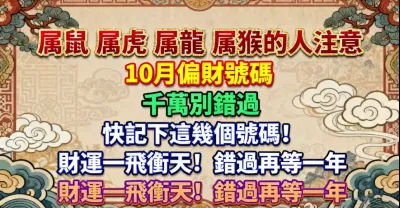 屬鼠 屬虎 屬龍 屬猴的人注意 10月偏財號碼千萬別錯過 ,快記下這幾個號碼!財運一飛沖天!錯過再等