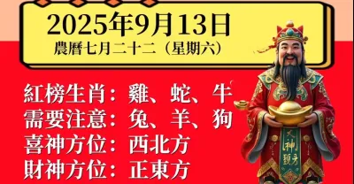 明日小運播報~2025 年 9 月 13 日(星期六)農曆七月二十二