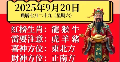 明日小運播報~2025 年 9 月 20 日(星期六)農曆七月二十九