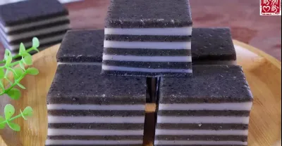 黑芝麻椰汁千層馬蹄糕,Q彈爽滑,芝麻香非常的濃郁,真的太好吃啦!Black Sesame Coconut Juice Thousand Layer Cake。