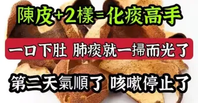 陳皮加2樣放鍋里煮一杯,肺痰一掃而光,咳嗽當晚就停止,第二天呼吸順了,咽喉清爽了