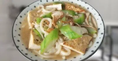 一個人也能吃得豐盛!5分鐘完成絲瓜豆腐烏龍麵,忙碌媽媽的救星,簡單有營養!好香!