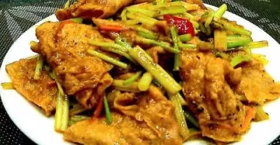 素食 (沙茶郁香豆皮) 真好吃 - Vegan 蔬房菜 Cuisine Taiwan 蔬食 (Fried bean skin)