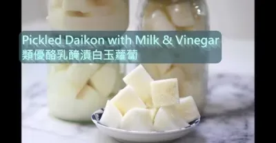 Pickled Daikon with Milk & Vinegar 鮮奶糯米醋腌漬白玉蘿蔔 做出媲美居酒屋或韓式炸雞店的白玉漬物非難事,知道比例後根據蘿蔔大小來分配腌漬湯汁重量,方便極了